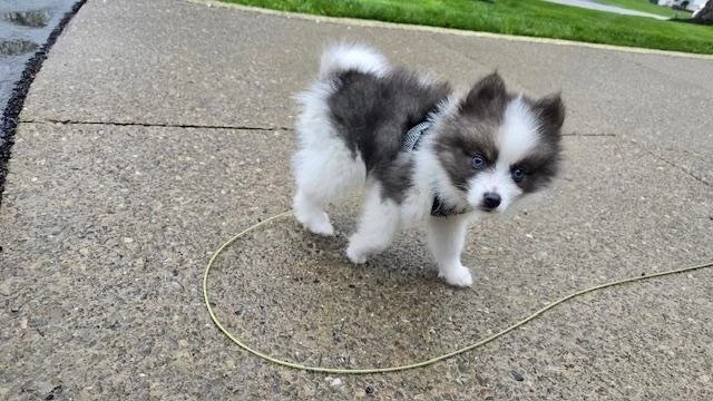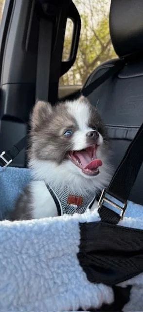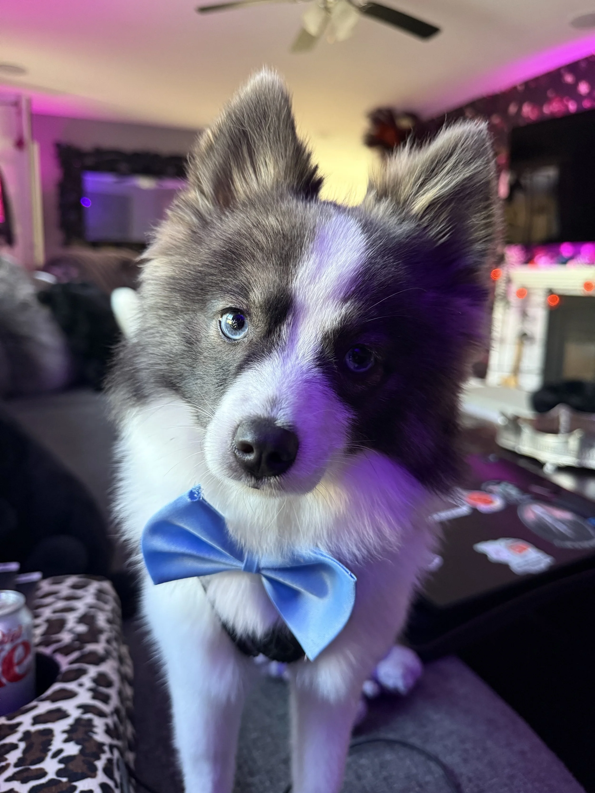 Meet Feta Cheese — all 8 pounds of blue-eyed intensity and very real opinions. With eyes as bright as his alert system, this Pomsky doesn’t do random pets (hard no) unless you’re his mom, in which case… fine. He loves other dogs and considers them safe, trusted allies. A true king of the side-eye, Feta isn’t judging you because he thinks he’s better—he’s side-eying to gently warn, “You better not even think about what you’re about to do.” A little anxious, deeply observant, and always on watch, he’s small in size, big in feelings, and fully committed to protecting his peace.